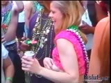 Geile Braunhaarige spielt mit lilanem Vibrator